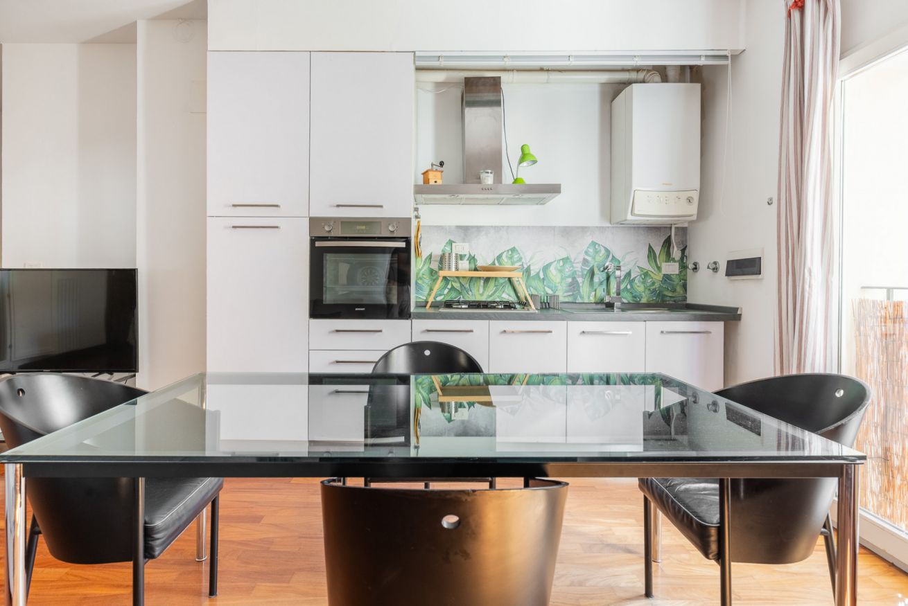 Questo bilocale in Via Irnerio 43 è la soluzione ideale per chi vuole vivere Bologna in pieno comfort. L’ingresso si apre su una zona giorno luminosa con parquet, dotata di cucina attrezzata, tavolo da pranzo, divano letto matrimoniale, TV, aria condizionata, bollitore e macchina Nespresso.
