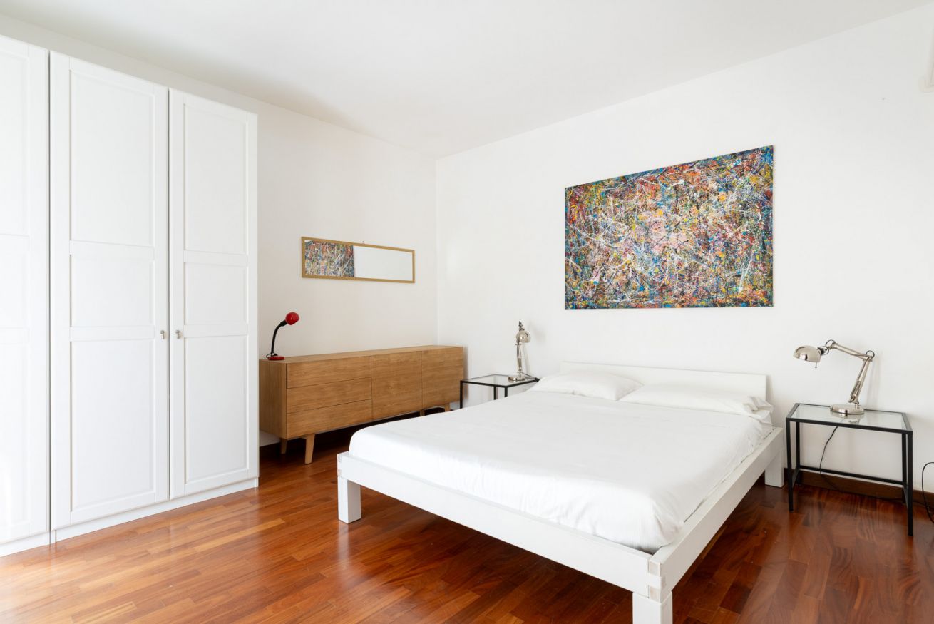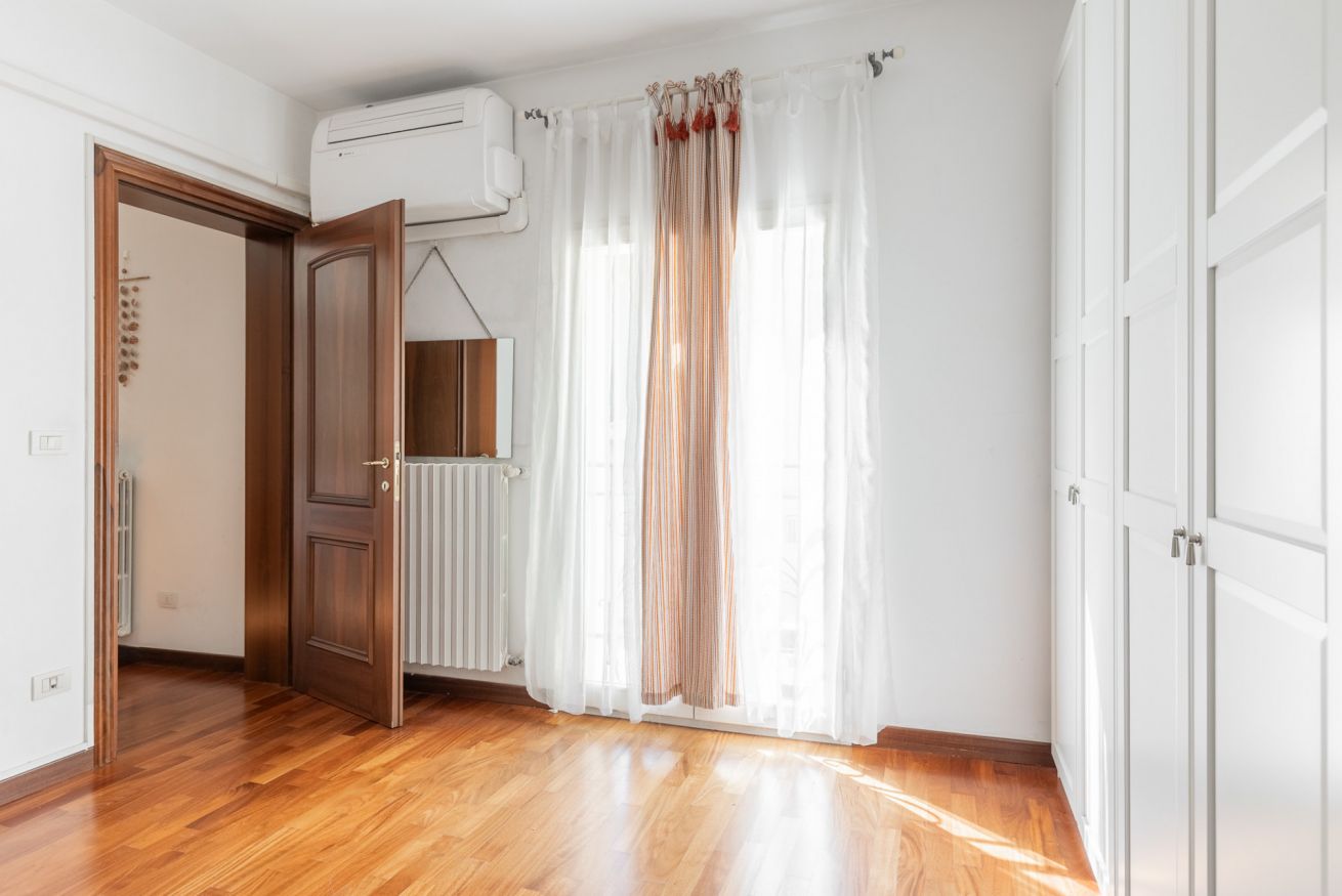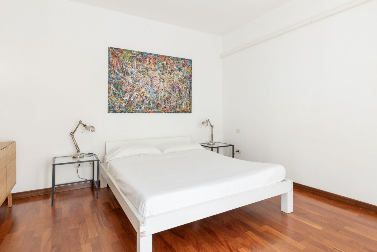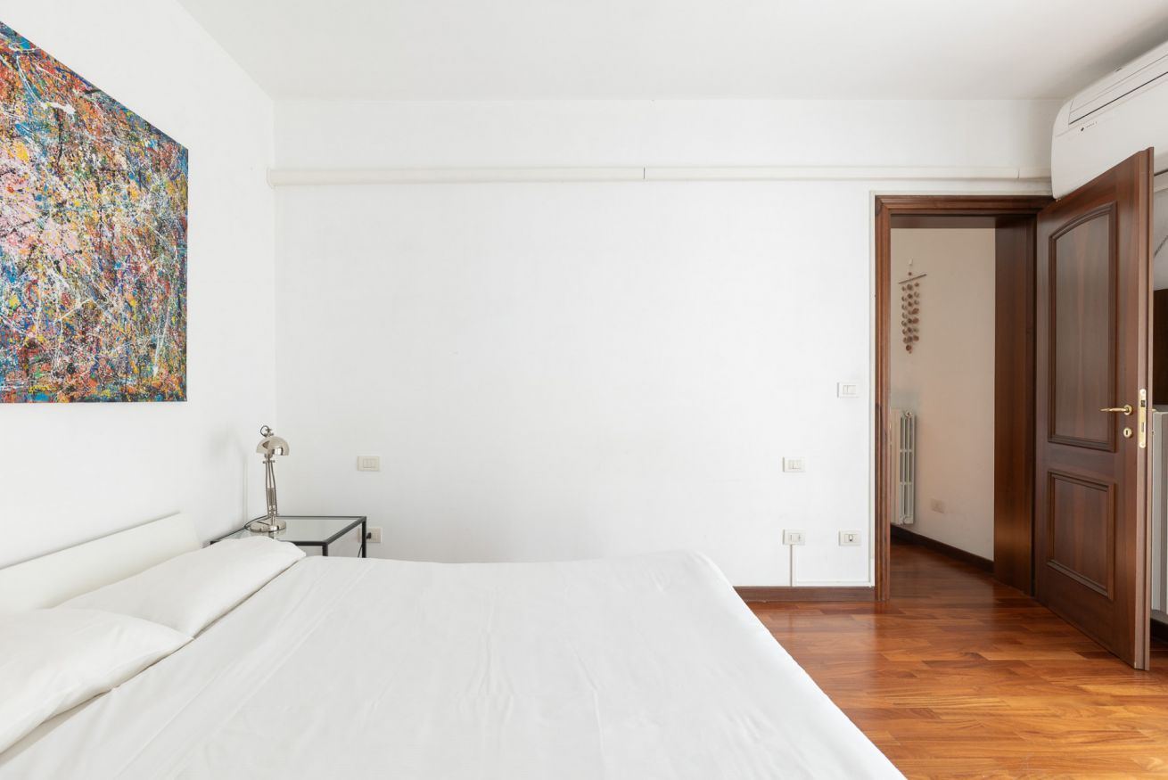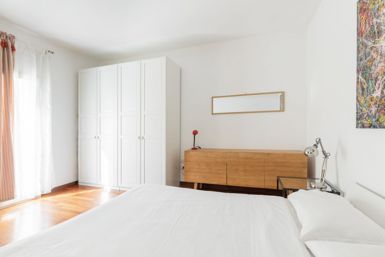 La camera da letto matrimoniale offre uno spazio accogliente e funzionale, con armadi per un soggiorno pratico e ordinato. Un antibagno con lavandino precede il bagno moderno, completo di wc, bidet e ampia doccia.